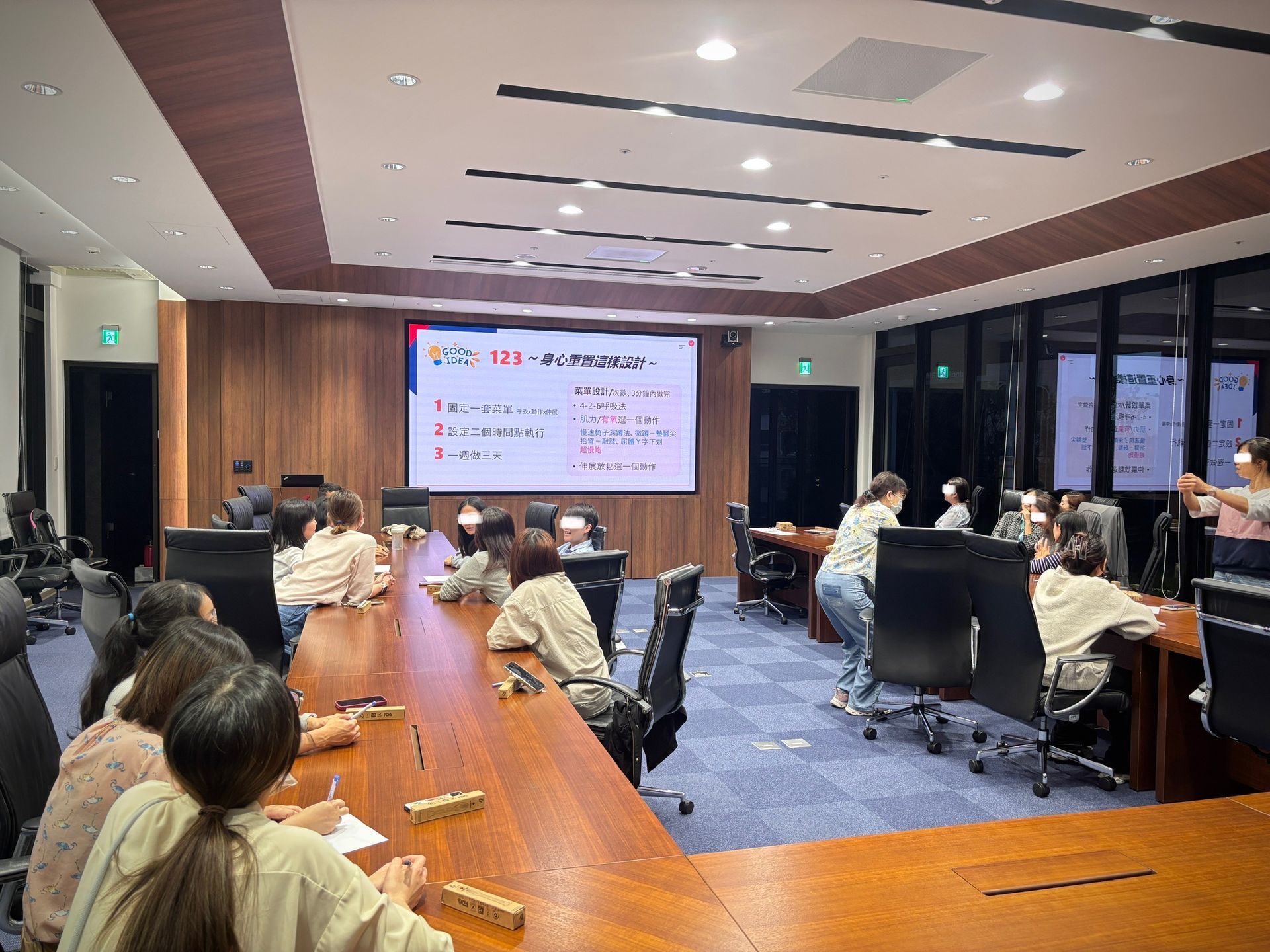 我把講座改成互動+實作的節奏,讓互動成為載體,使更多的理解能落實到同仁心上。短短幾分鐘,大家可以跟著練習呼吸、做幾個不需要換裝的微訓練動作;那些絲毫不費力、不張揚的小動作,像是讓呼吸變得順暢、抬起肩背不那麼拉扯,就會在心裡留下記憶點,利用簡單的動作來減小阻力,會更願意去做。很多時候,對「身體可以恢復」的信心,就是這樣被一點一滴地累積回來。
