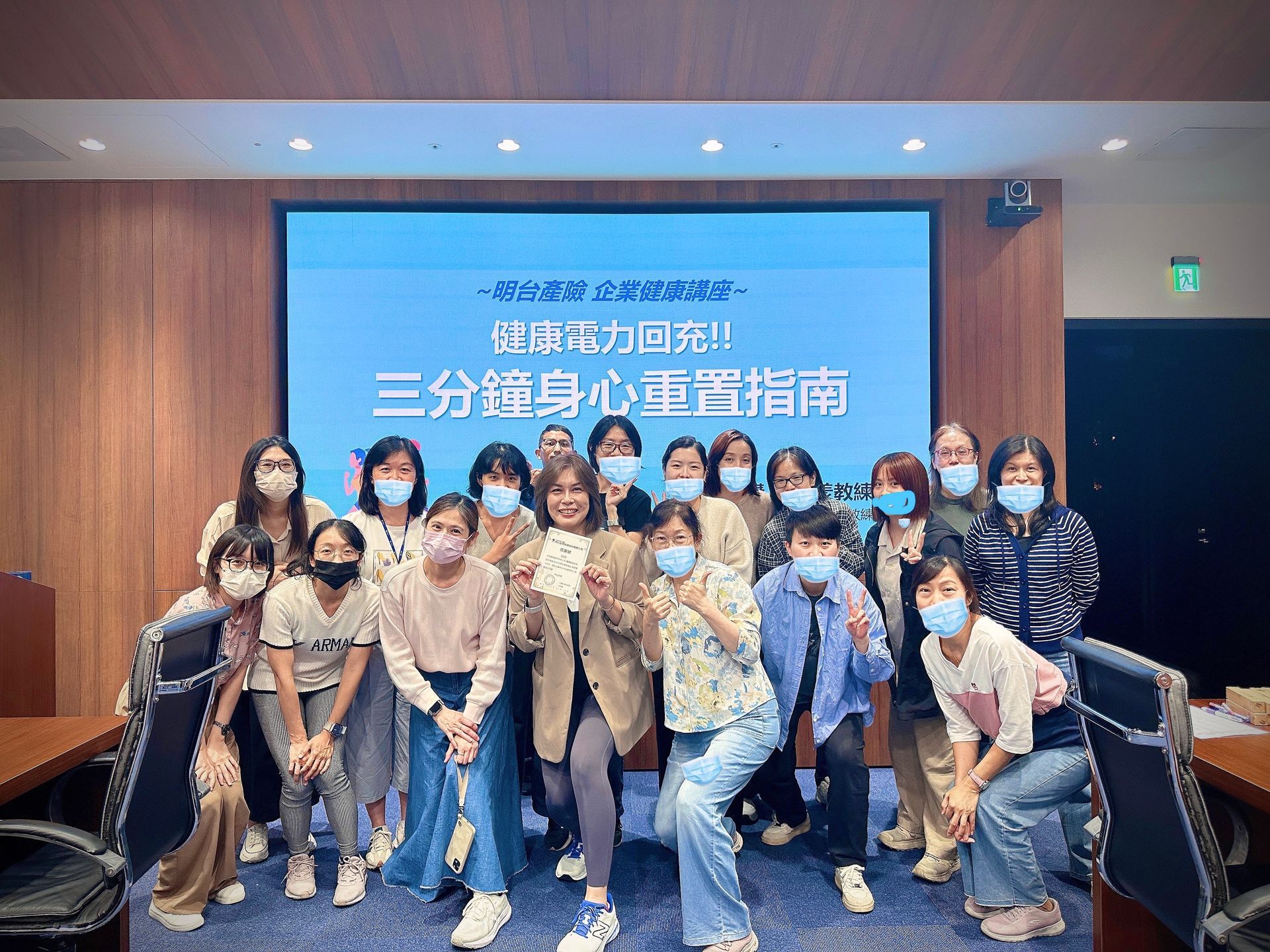 也感謝明台產險給我機會可以跟同仁們分享這些,讓我的專業可以協助同仁更輕鬆地邁向健康,讓健康職場更落實!